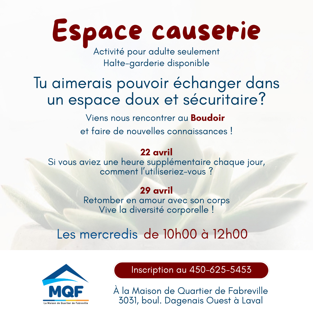 Viens nous rencontrer et faire de nouvelles connaissances tous les mercredi matin 10h, pour des discussions autour d’un thème choisi. Une intervenante anime la discussion et peut répondre à tes questions en toute confidentialité.