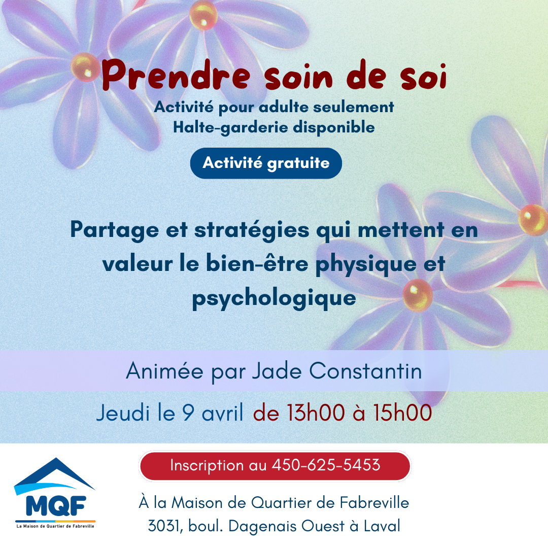 Partage et stratégies qui mettent en valeur le bien-être physique et psychologique. Une activité animée par Jade Constantin. Sur inscription seulement.